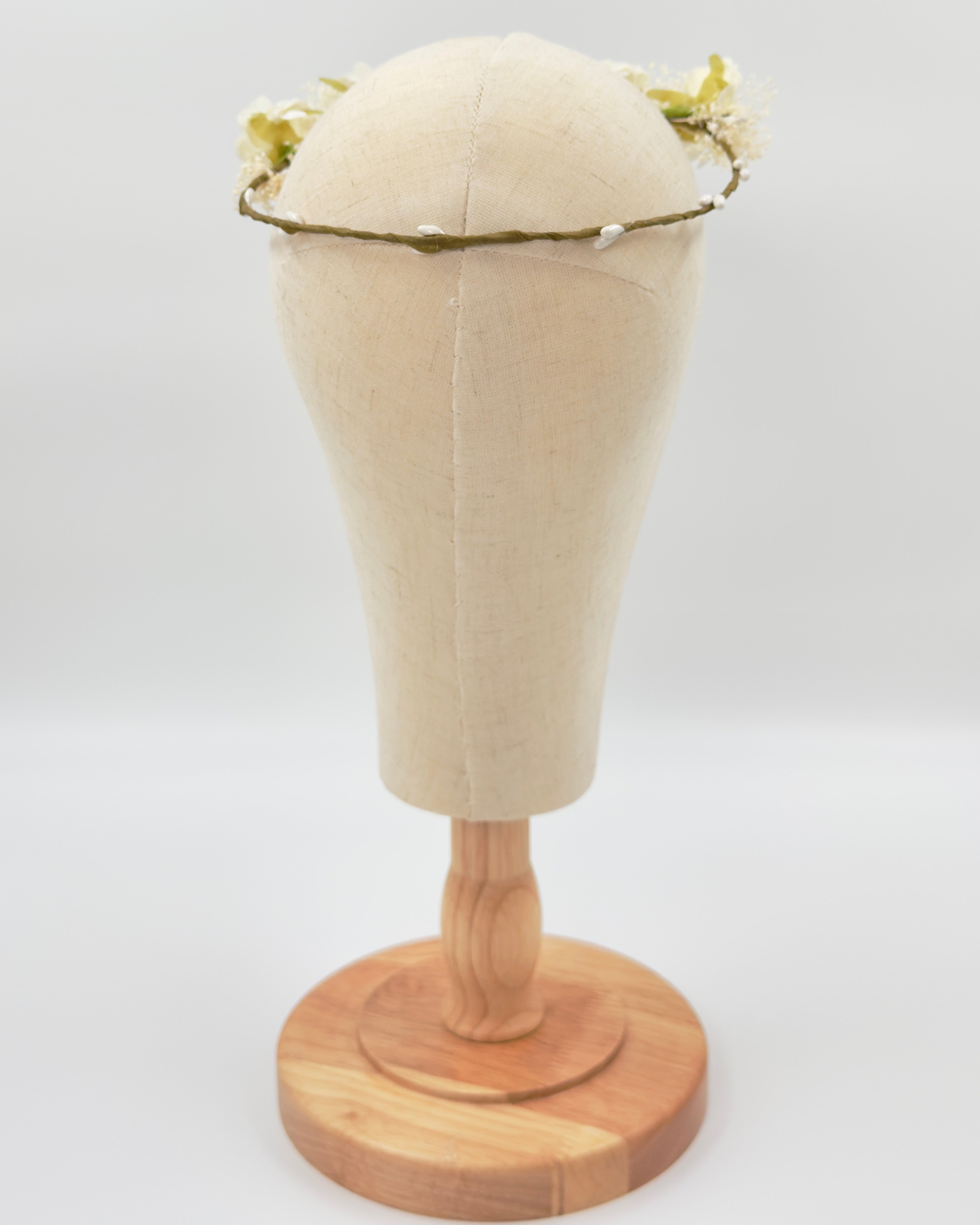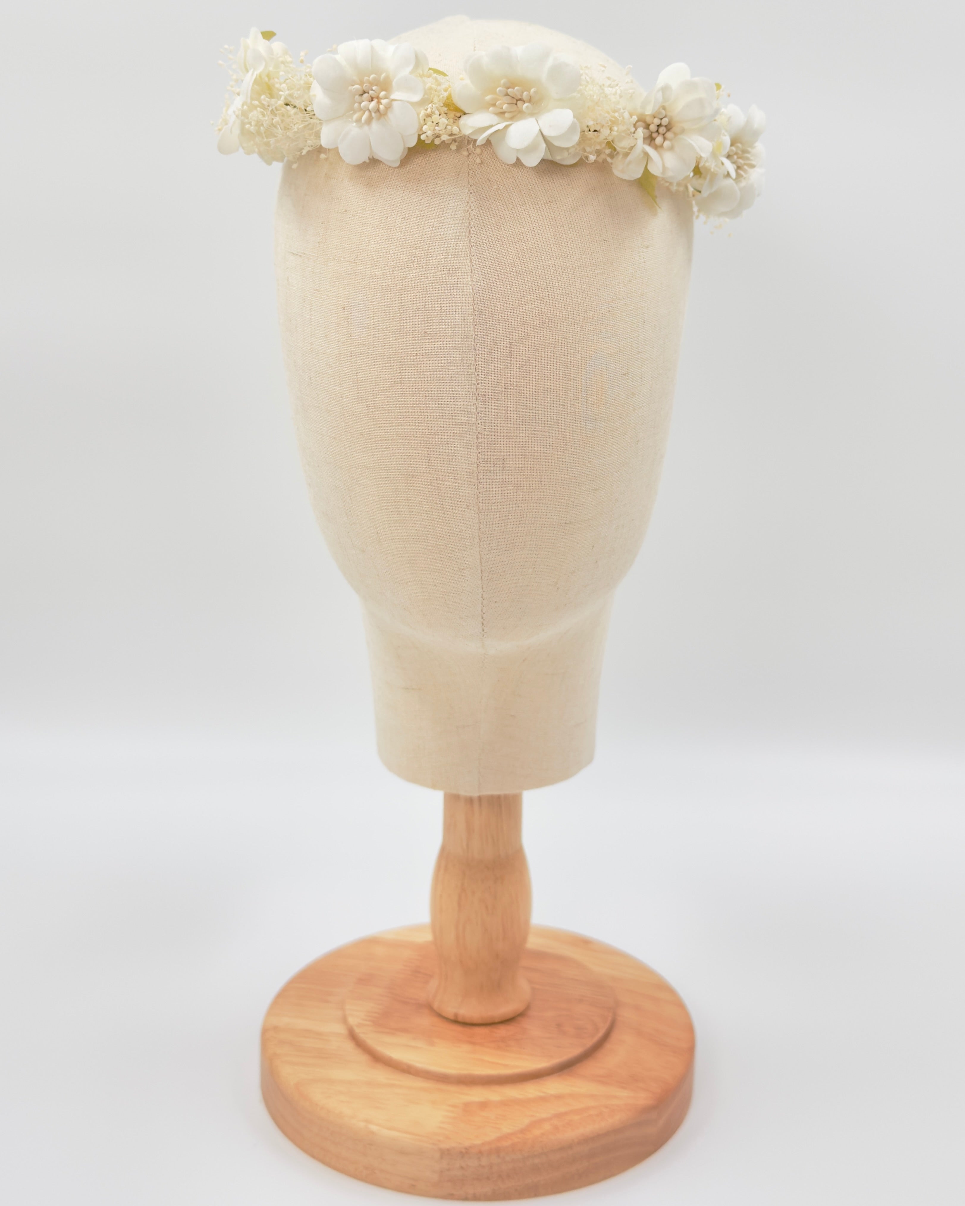 Gorgeous statement headpiece for girls, made with fabric flowers and natural details.