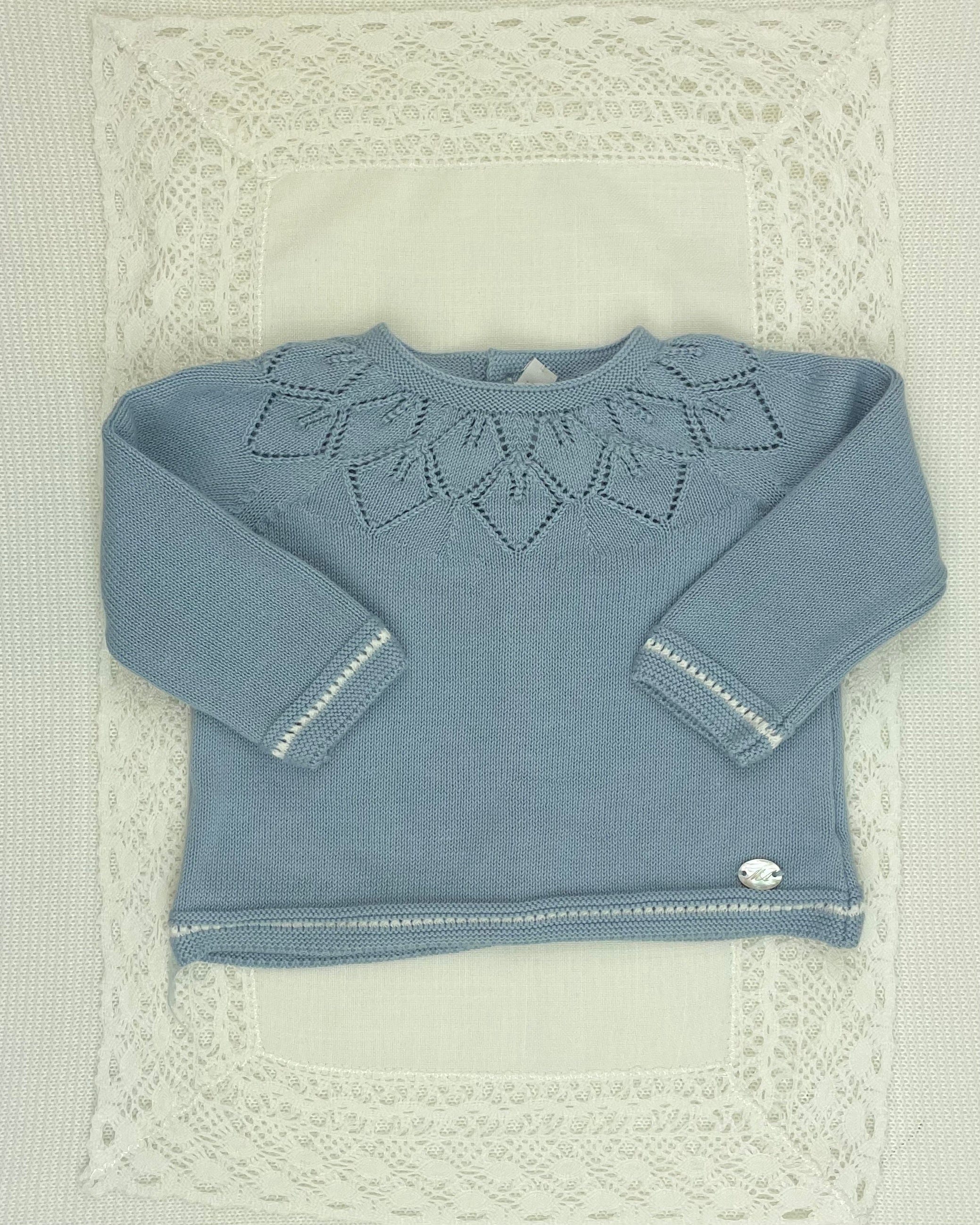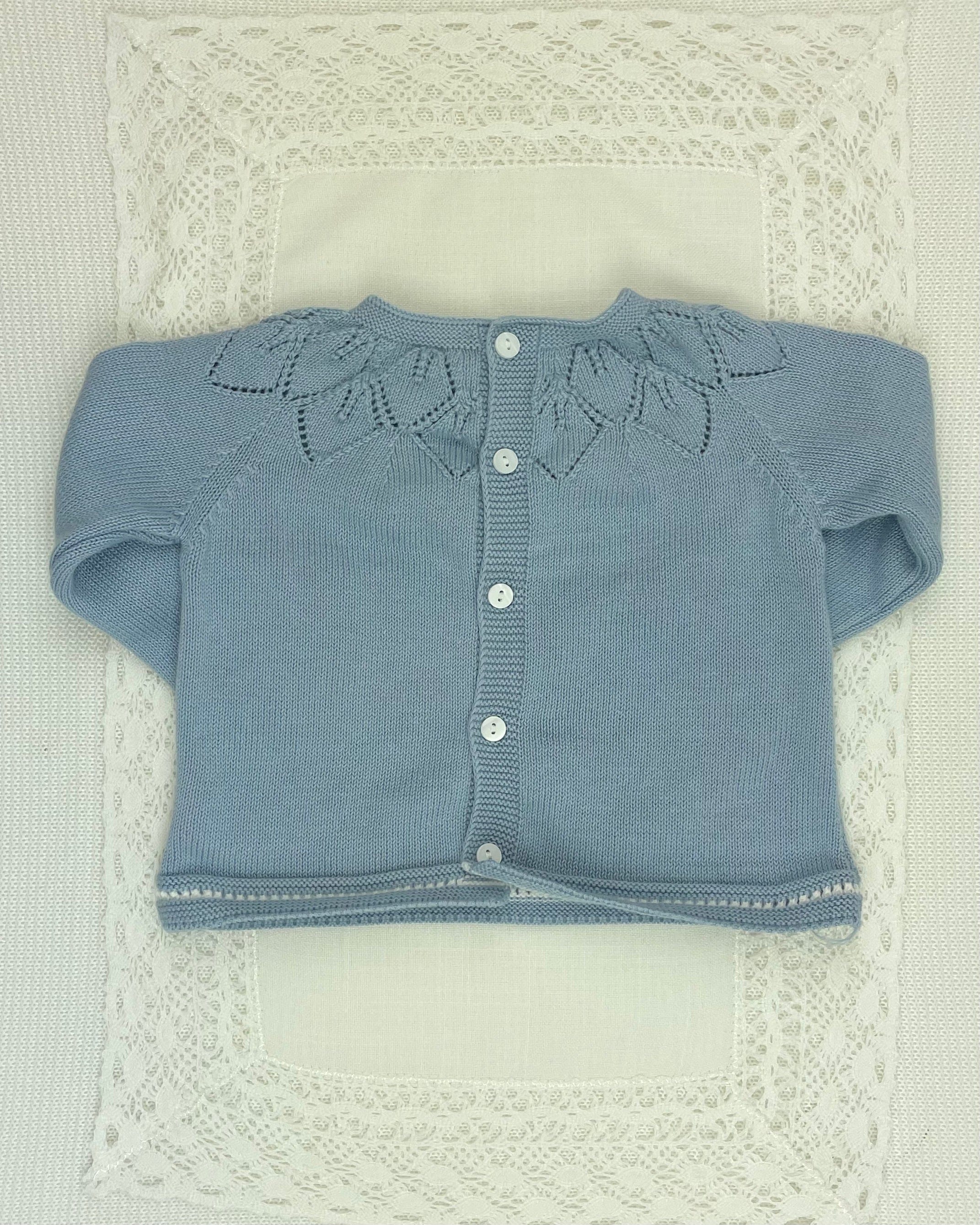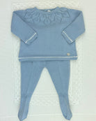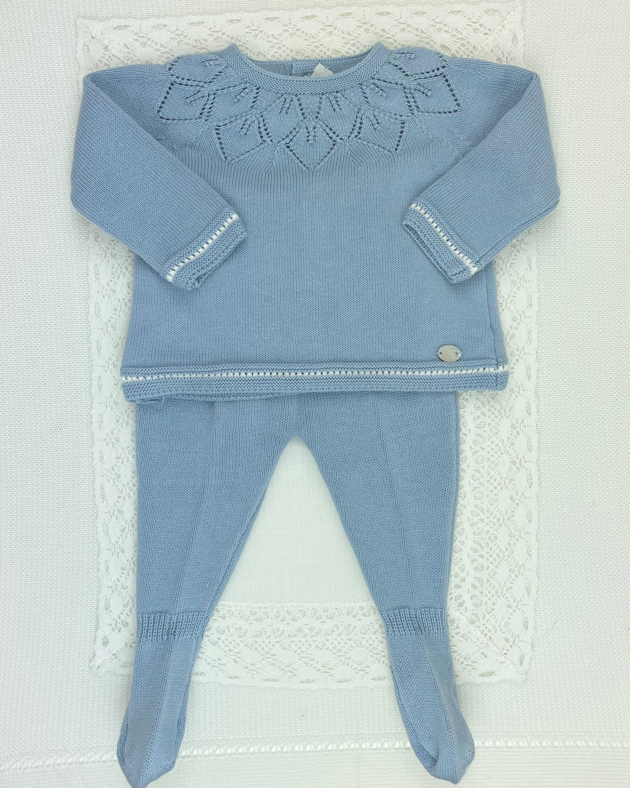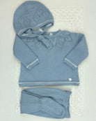 Understated and timeless, this cadet grey knitted outfit is a beautifully minimalist and traditional choice for welcoming your baby boy in style and comfort.
