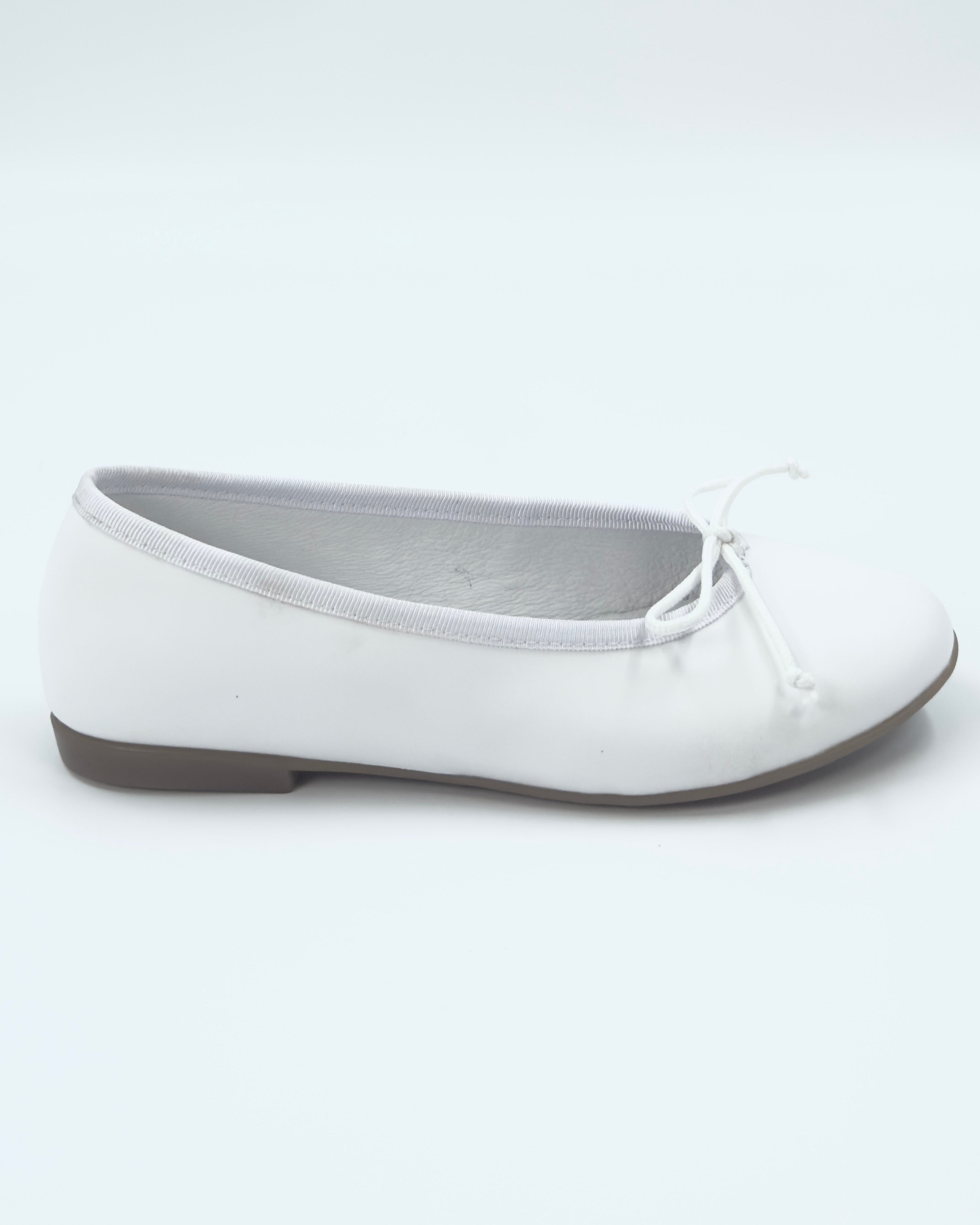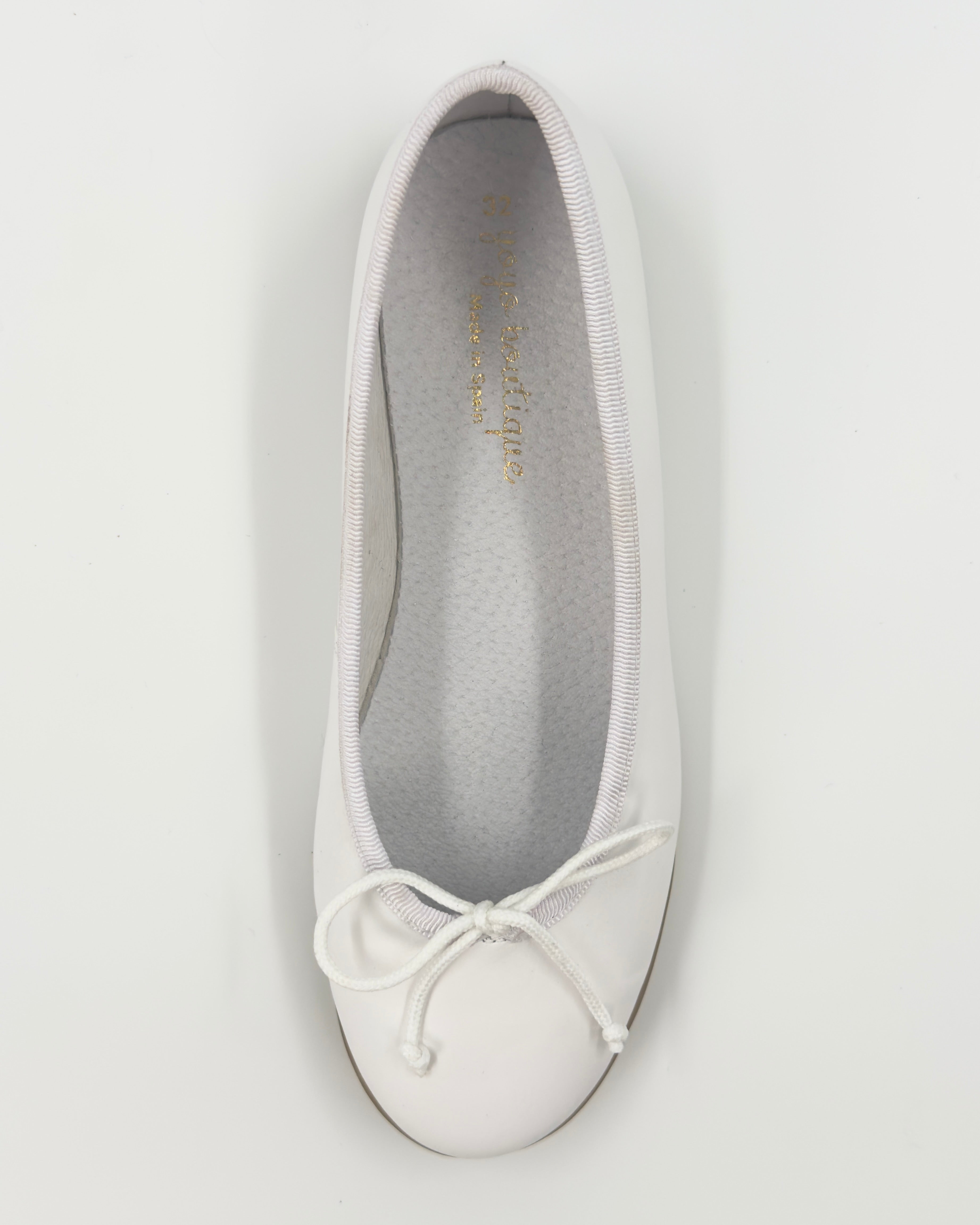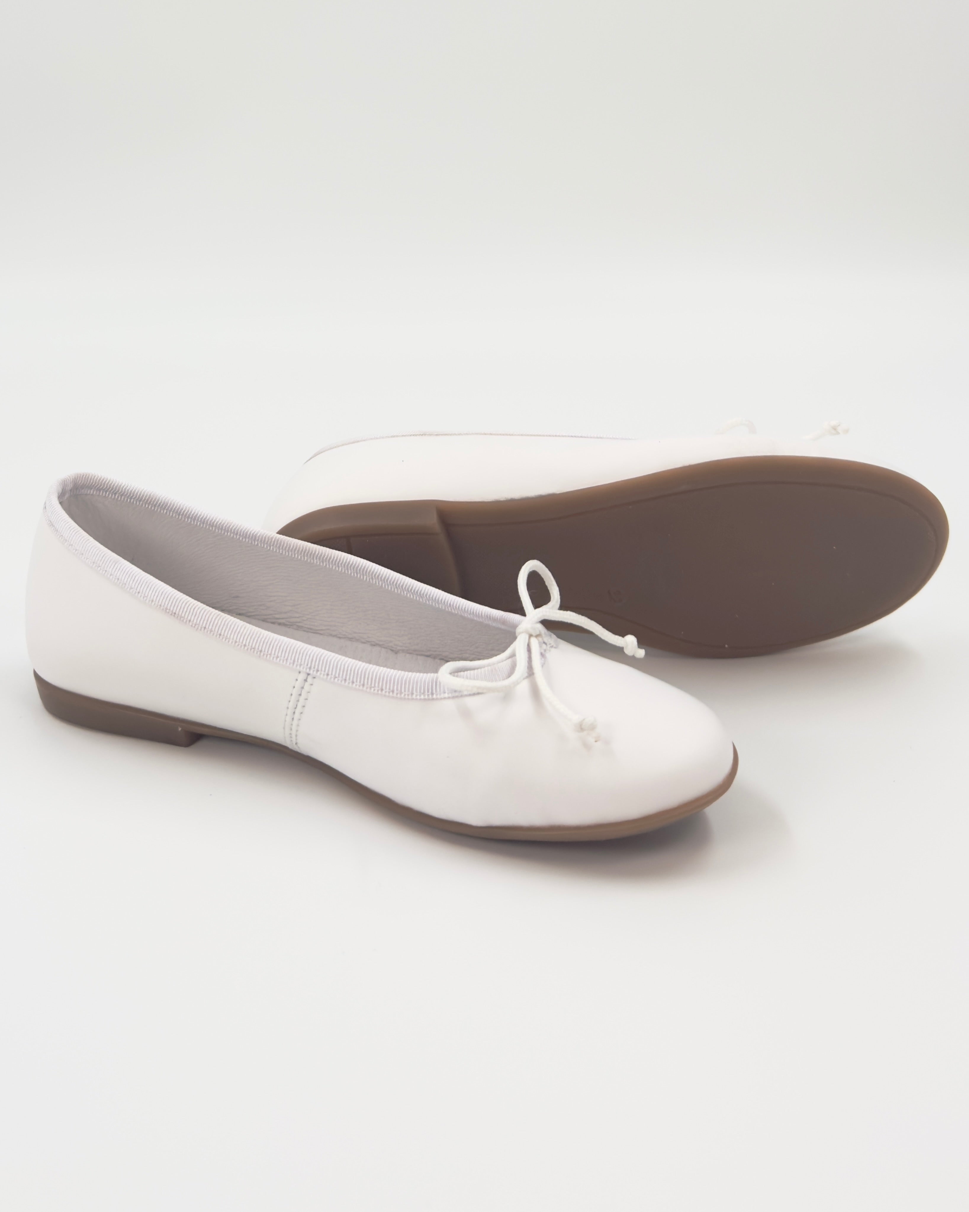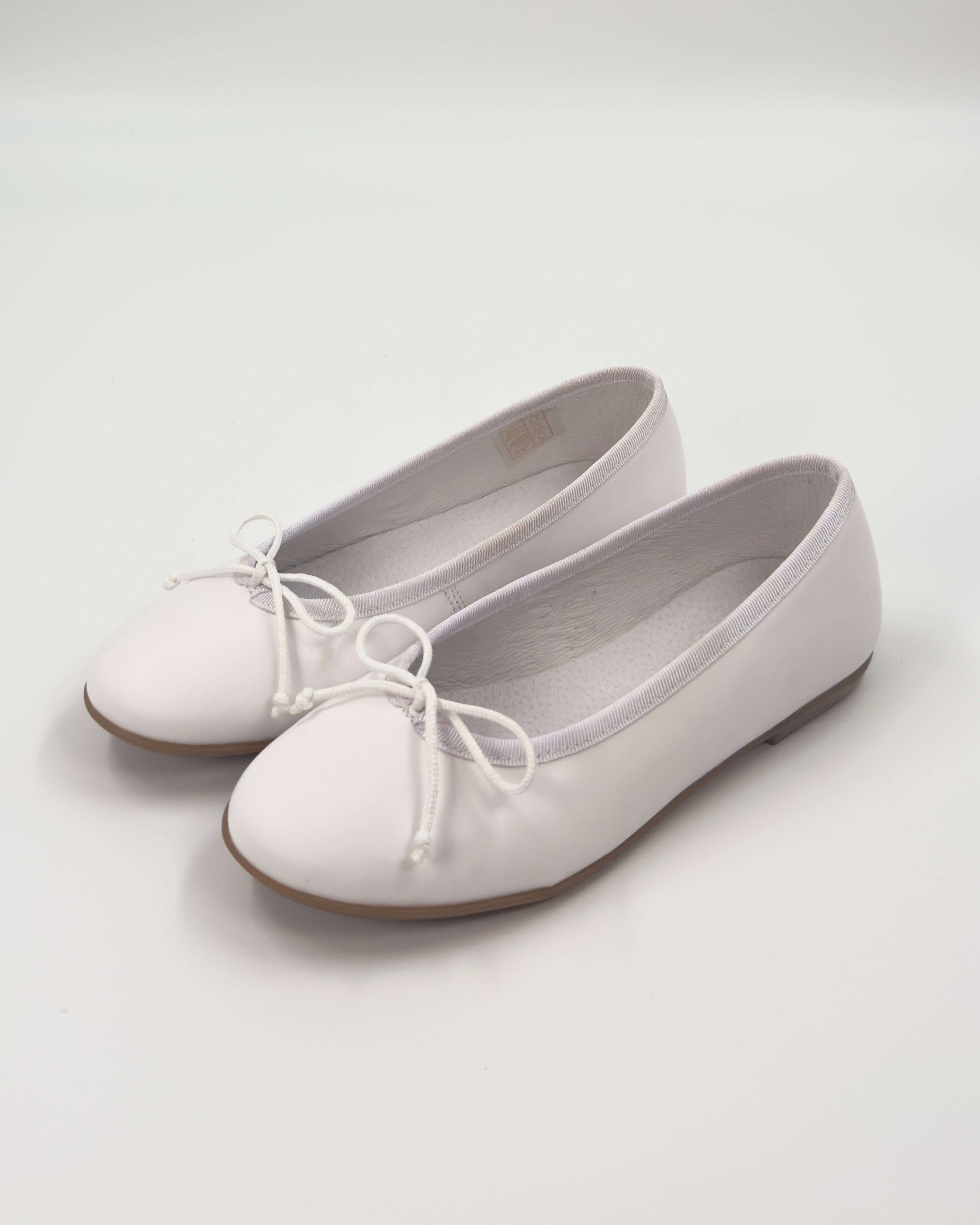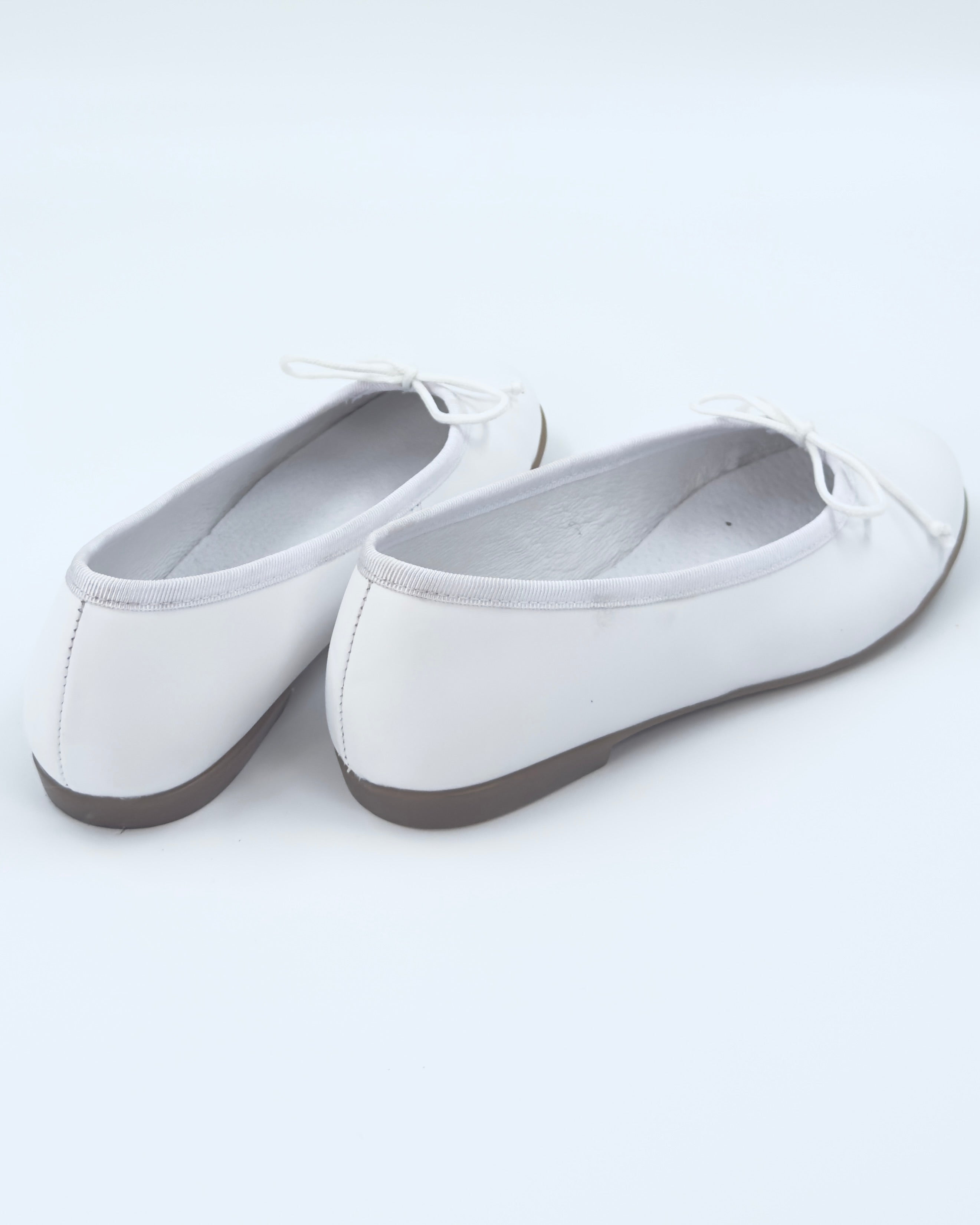 Our White Ballerina Flat Shoes are a classic and graceful choice for girls to wear on special occasions. Beautifully handcrafted in Spain from soft genuine leather, these flats feature a sleek, timeless design and a flexible rubber sole for comfort and durability. Perfect for First Communion, weddings, or formal celebrations, they add the perfect finishing touch to any elegant outfit.