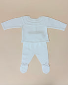 Pure, simple, and timeless—this all-white knitted outfit is a beautifully minimalist and gender-neutral choice for your baby’s first days.
